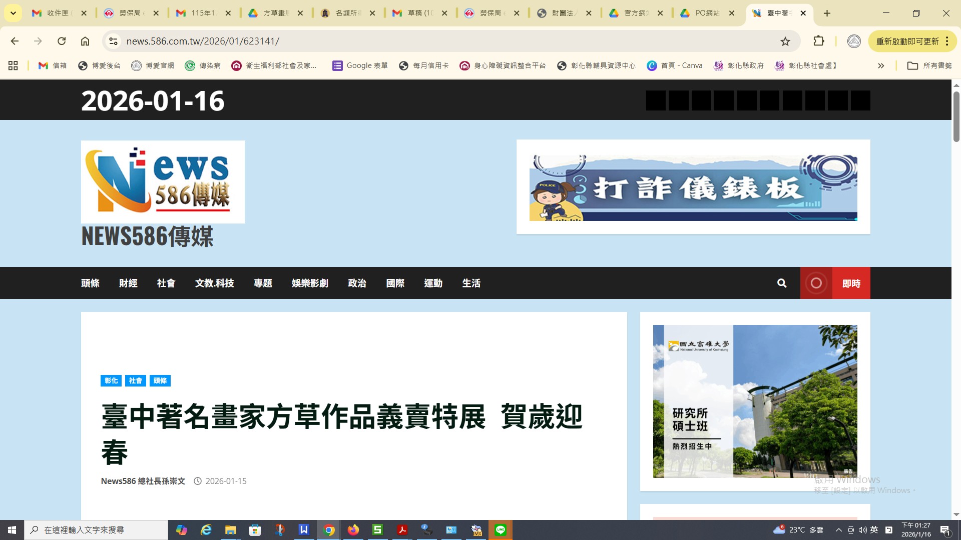 News586焦點傳媒社 臺中著名畫家方草作品義賣特展 賀歲迎春-